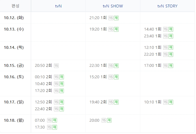 tvN, tvN SHOW, tvN STORY에서 재방송을 시청할 수 있고, 티빙, 네이버 시리즈온, tvN 온에어를 통해서 모바일 다시 보기 시청이 가능합니다.